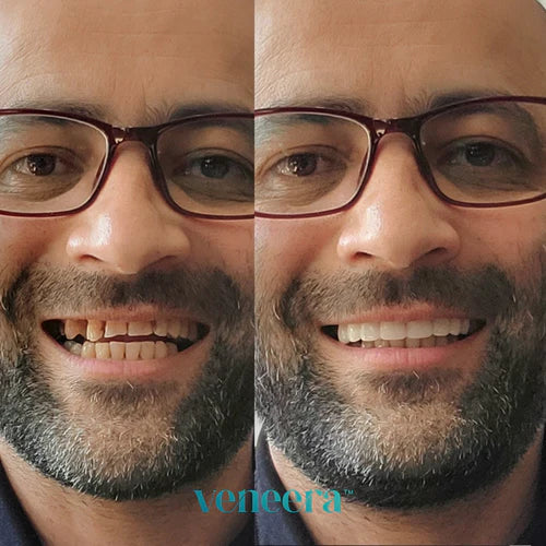 Heb je last van ontbrekende tanden, tandgaten en/of scheve tanden? Of ben je gewoon niet tevreden over de kleur van je tanden? Met Veneera™ behoort dit nu tot het verleden. De flexibele en op maat gemaakte Tand-Veneer corrigeert onvolkomenheden van je natuurlijke tanden en zorgt voor een onberispelijke glimlach - wanneer je maar wilt.