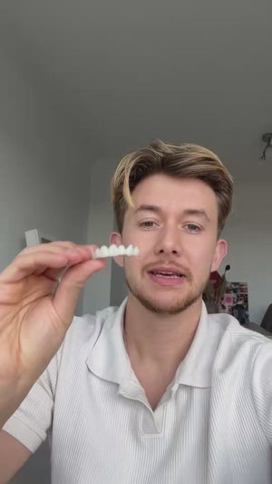 Een set van 8 veneers die op je echte tanden worden aangebracht. Een cosmetische tandverfraaiing die alle onvolkomenheden bedekt. De Tand-Veneer 3.0 wordt op maat gemaakt en past perfect op je tanden. Het proces is eenvoudig en vereist geen bezoek aan de tandarts. Bestel vandaag nog je nieuwe glimlach online en ontvang deze binnen enkele dagen zonder veel moeite, gemakkelijk en discreet!
